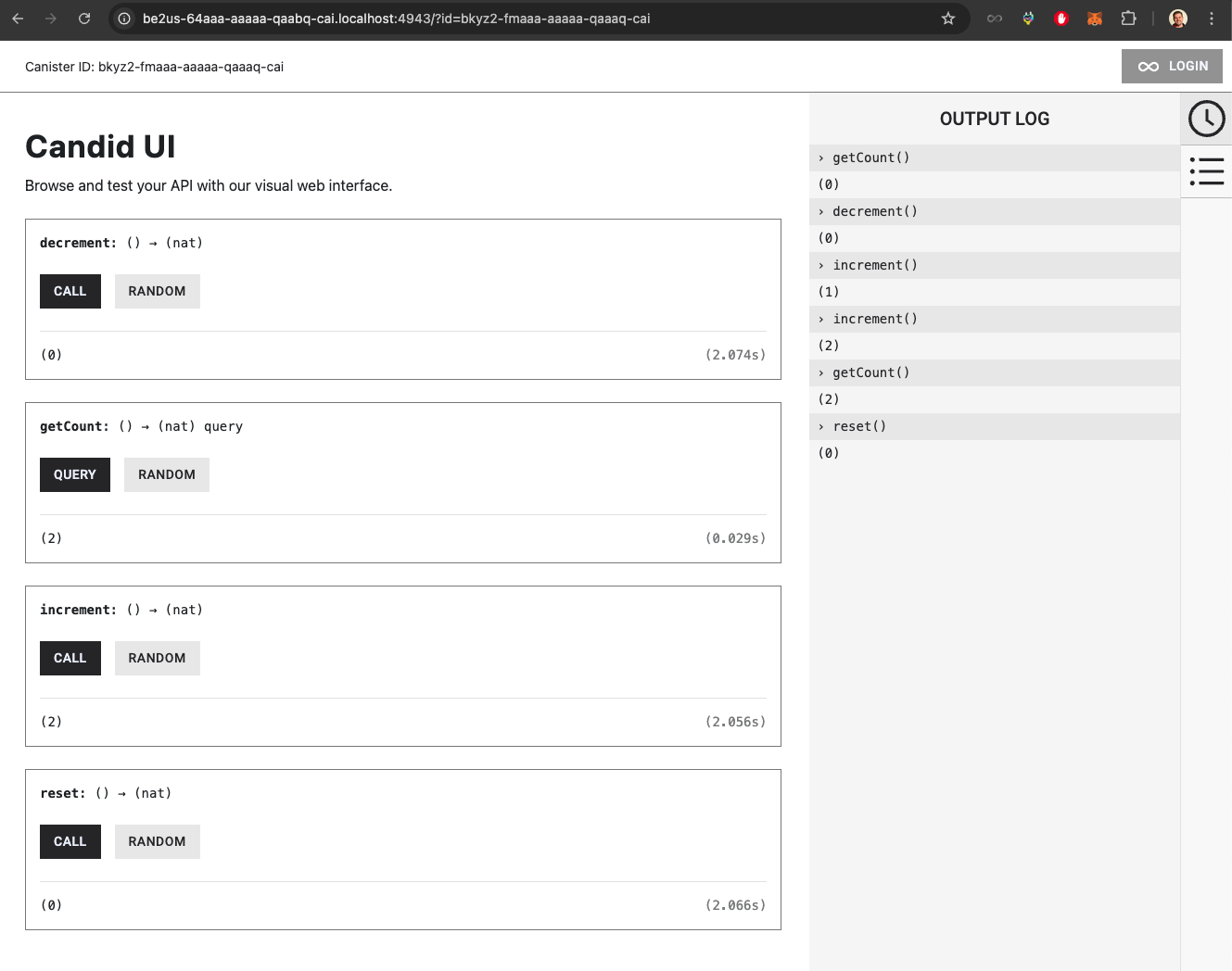 - Reload - On click, the counter value will be reloaded. This is useful in case the value has been changed via Candid interface.